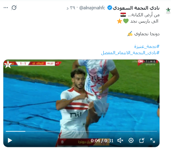 أعلن نادى النجمة السعودى تعاقده رسمياً مع اللاعب نبيل عماد دونجا لاعب الزمالك السابق.