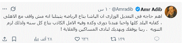 وكتب عمرو اديب من خلال حسابه على موقع التواصل الاجتماعي اكس قائلا: