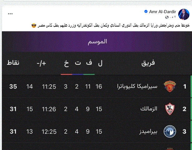 عمرو الدردير بكلمات كلها ثقة عبر حسابه على موقع التواصل الاجتماعي فيسبوك كتب قائلا: