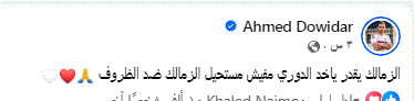 وكتب دويدار من خلال حسابه على موقع التواصل الاجتماعي فيسبوك قائلا: