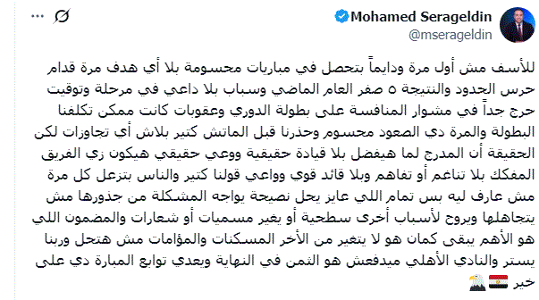 وكتب محمد سراج الدين من خلال حسابه على موقع التواصل الاجتماعي اكس قائلا: