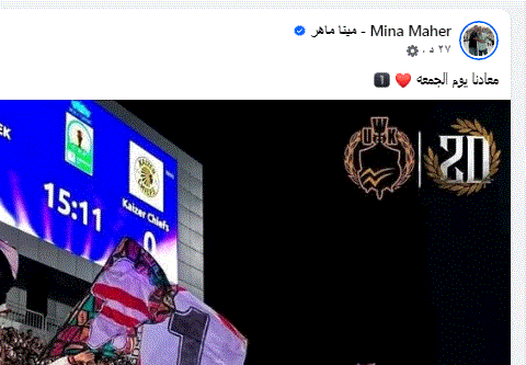 وكتب بوست أخر على صورة جماهير الزمالك: معادنا يوم الجمعة.. في اشارة الى مباراة الزمالك وحرس الحدود القادمة في الدوري