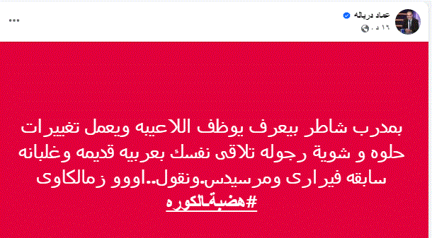 وكتب عماد دربالة من خلال حسابه على موقع التواصل الاجتماعي فيسبوك قائلا: