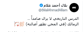 وكتب بلال علام من خلال حسابه على موقع التواصل الاجتماعي اكس قائلا: