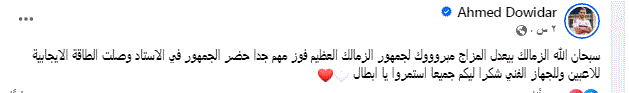 وكتب أحمد دويدار من خلال حسابه على موقع التواصل الاجتماعي فيسبوك قائلا: