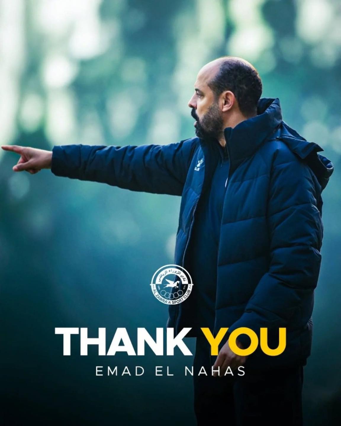 ووفق الاعلان الرسمي جاء فك الارتباط مع المدير الفني للفريق المصري عماد النحاس، بعدما توصلت الهيئة الإدارية للنادي لاتفاق يقضي بإنهاء التعاقد بين الطرفين بالتراضي.