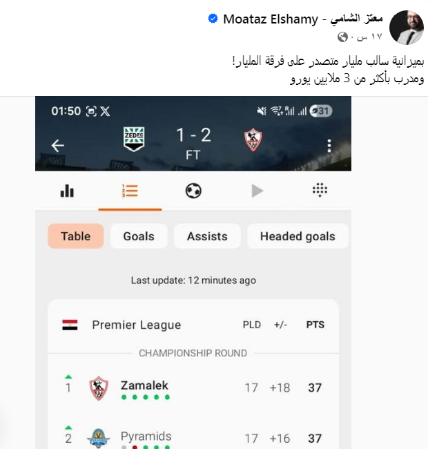 لا تزال ردود الأفعال تتواصل على فوز الزمالك بمباراة زد بالأمس وتصدره الدوري العام.