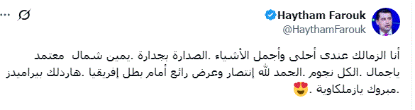 وكتب هيثم فاروق من خلال حسابه على موقع التواصل الاجتماعي اكس قائلا :