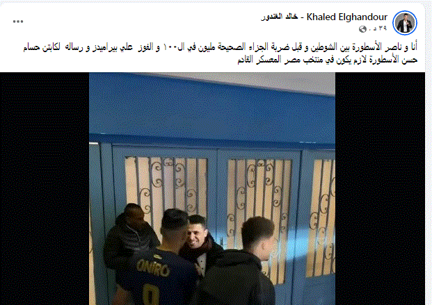 أنا و ناصر الأسطورة بين الشوطين و قبل ضربة الجزاء الصحيحة مليون في ال١٠٠ و الفوز علي بيراميدز و رساله لكابتن حسام حسن الأسطورة لازم يكون في منتخب مصر المعسكر القادم