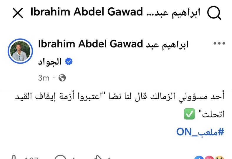 وعبر صفحته الشخصية على موقع التواصل الاجتماعى فيس بوك كتب إبراهيم عبد الجواد قائلاً :
