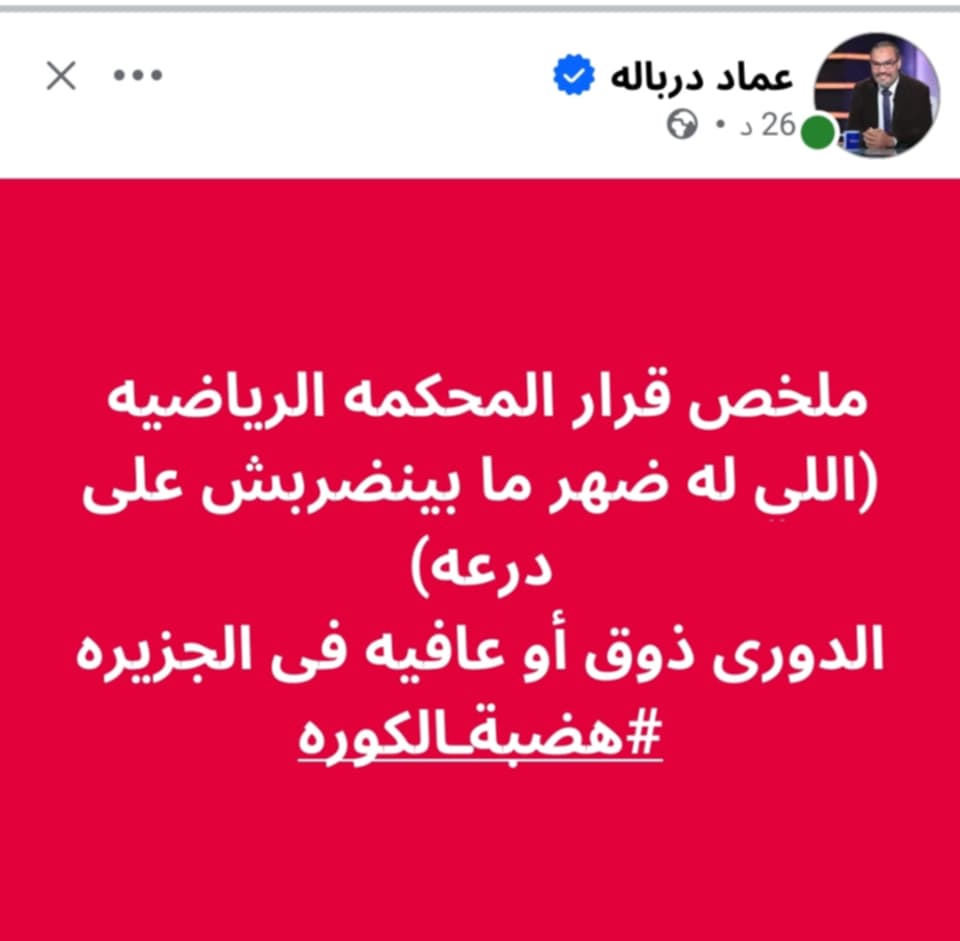 الحكم الصالح بأحقية الاهلى فى الدورى بعد تظبيط الورق هنا فى مصر، ليعلق دربالة على هذا القرار.