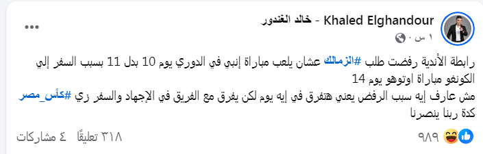 مش عارف إيه سبب الرفض يعني هتفرق في إيه يوم لكن يفرق مع الفريق في الإجهاد والسفر زي #كأس_مصر كدة ربنا ينصرنا