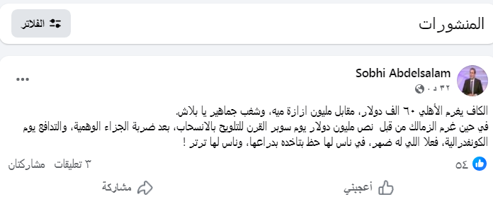 وعبر صفحته الشخصية على موقع التواصل الاجتماعى فيس بوك كتب صبحى عبد السلام قائلاً :