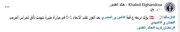 علق الاعلامي خالد الغندور نجم الزمالك السابق على فوز الزمالك اليوم على الاتحاد السكندري في الدوري