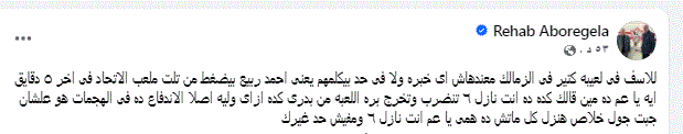علق رحاب أبو رجيلة عضو مجلس ادارة الزمالك السابق على فوز الزمالك اليوم على الاتحاد السكندري في الدوري