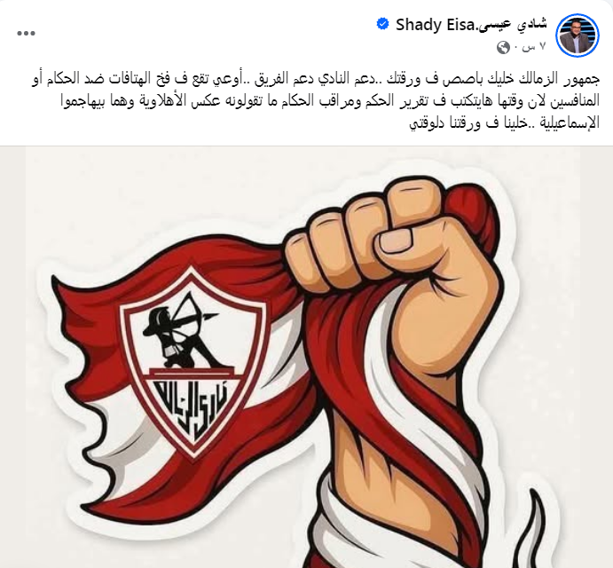 الزمالك متصدر الدورى المصرى الآن، وبالطبع هناك محاولات لعرقلة الفريق، ليوجه شادى عيسي رسالة الى الجمهور.