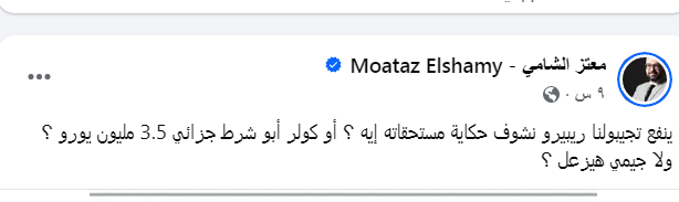 وعبر صفحته الشخصية على مقوع التواصل الاجتماعى فيس بوك كتب معتز الشامي قائلاً معلقاً :