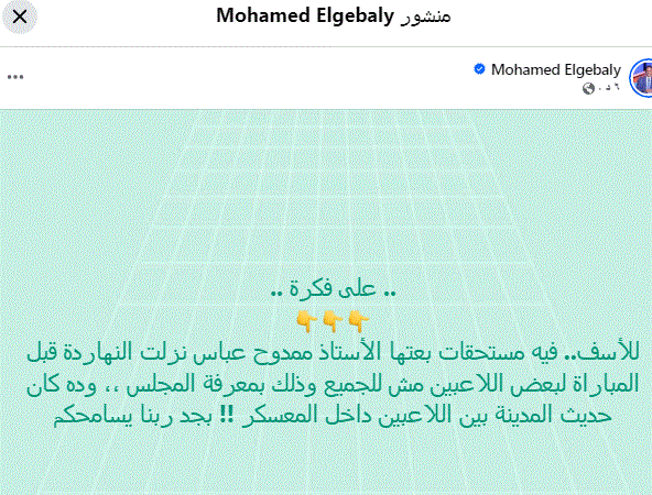 محمد الجبالي من خلال حسابه على موقع التواصل الاجتماعي فيسبوك كتب قائلا: