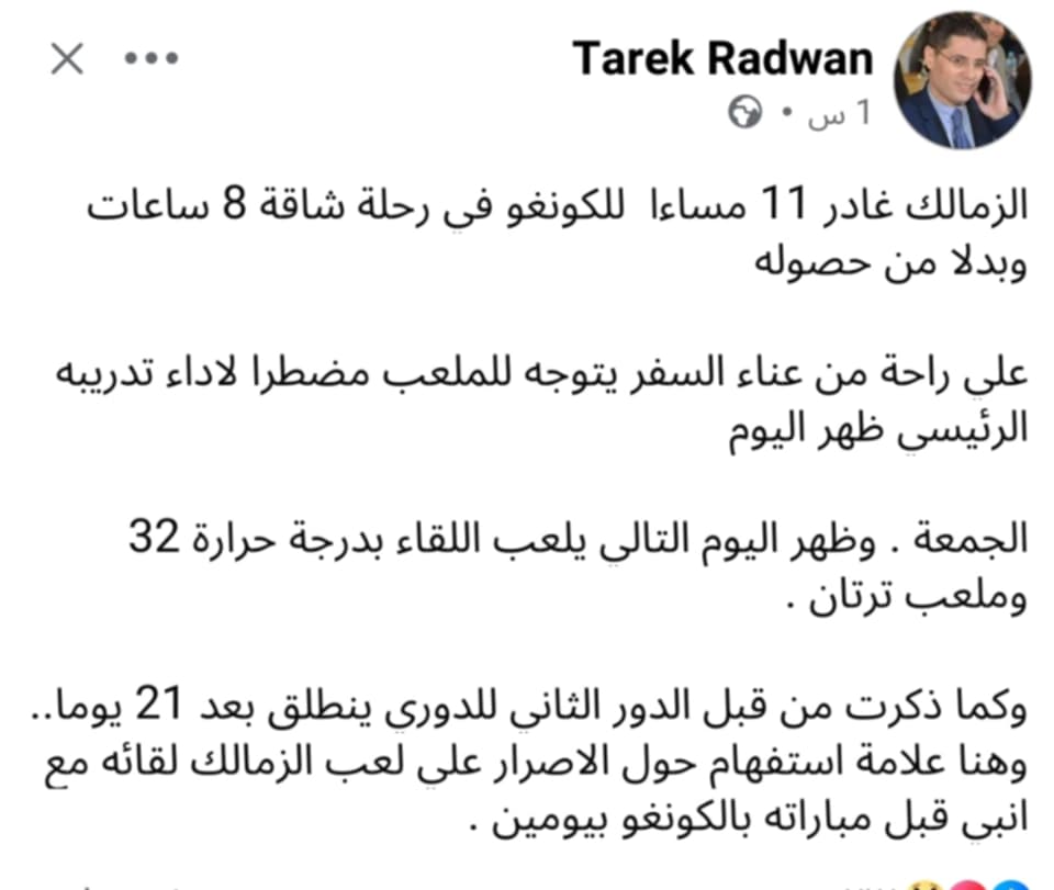 وعبر صفحته الشخصية على موقع التواصل الاجتماعى فيس بوك كتب طارق رضوان قائلاً :