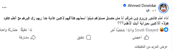 وكتب أحمد دويدار من خلال حسابه على موقع التواصل الاجتماعي فيسبوك قائلا: