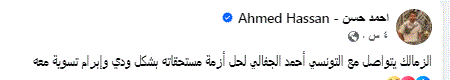 وكتب أحمد حسن من خلال حسابه على موقع التواصل الاجتماعي فيسبوك قائلا: