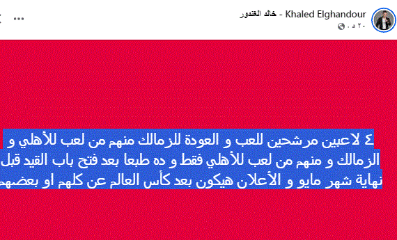٤ لاعبين مرشحين للعب و العودة للزمالك منهم من لعب للأهلي و الزمالك و منهم من لعب للأهلي فقط