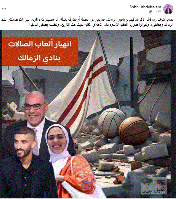 وجه الكاتب الصحفي صبحي عبد السلام رسالة الى ثلاثي أعضاء مجلس ادارة الزمالك المسئول عن ألعاب الصالات، هشام نصر ونسرة الأحمر ورامي نصوحي.
