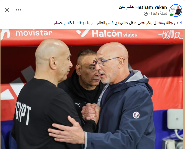 اداء رجالة ومتفائل بيكم نعمل شغل عالي في كأس العالم .. ربنا يوفقك يا كابتن حسام