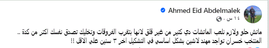 وكتب أحمد عيد عبر حسابه على موقع التواصل الاجتماعي فيسبوك قائلا: