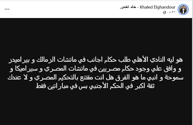 الاهلى طلب حكام أجانب لهذه المباريات فقط، ليسأل خالد الغندور على هذا الأمر.
