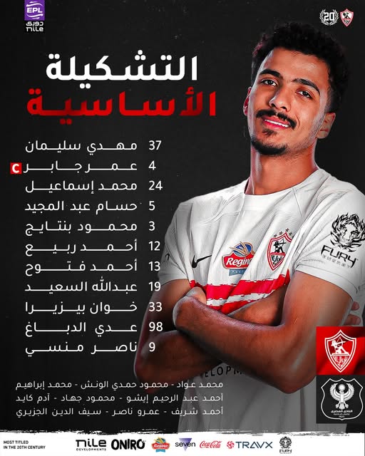 خط الدفاع: محمود بنتايج – حسام عبد المجيد – محمد إسماعيل – عمر جابر.