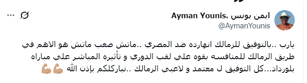 وكتب أيمن يونس من خلال حسابه على موقع التواصل الاجتماعي فيسبوك قائلا :