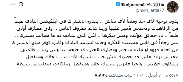بدون توجيه لأى حد ومنعاً لأى نقاش .. بهدوء الاشتراك فى ابلكيشن النادى طبعاً من الرفاهيات ومحدش مُجبر عليها وربنا عالم بظروف الناس .. وفى مصارف أولى طبعاً .. ده حقائق مؤكدة ومش بنكرها ..
