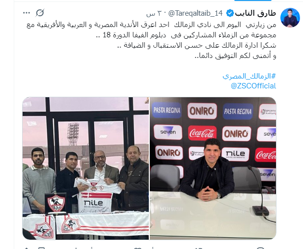حيث قام طارق التايب بزيارة الزمالك، ولقى ترحيب كبير من مسئولى الزمالك، ليعلق على هذه الزيارة.