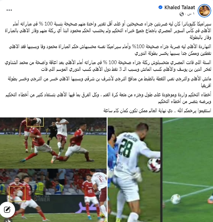 علق الصحفي خالد طلعت المحسوب على الاهلى على حالة "الدوشة" اللى عاملها الاهلى" بسبب ركلة الجزاء التي لم يتم احتسابها.
