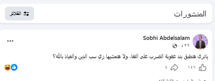 ياترى هنطبق بند عقوبة الضرب على القفا، ولا هنمشيها زي سب الدين والعياذ بالله؟
