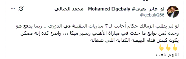 محمد الجبالي من خلال حسابه على موقع التواصل الاجتماعي اكس تحدث قائلا: