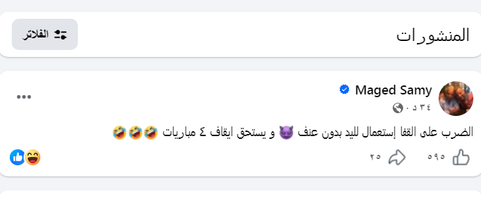 الضرب على القفا إستعمال لليد بدون عنف .. و يستحق ايقاف ٤ مباريات ... مصحوب التعليق بـ إيموشن ضحك