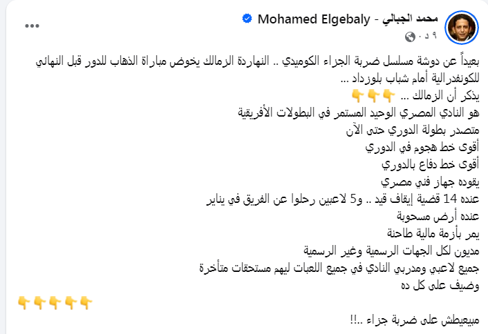 وعبر صفحته الشخصية على موقع التواصل الاجتماعى فيس بوك كتب محمد الجبالى معلقاً :