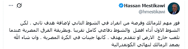 وكتب حسن المستكاوي من خلال حسابه على موقع التواصل الاجتماعي اكس قائلا: