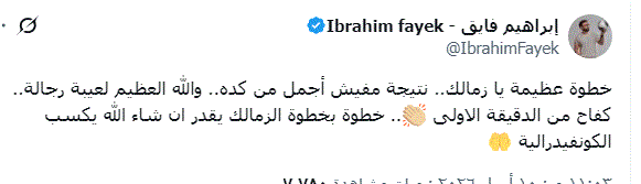وكتب ابراهيم فايق من خلال حسابه على موقع التواصل الاجتماعي اكس قائلا: