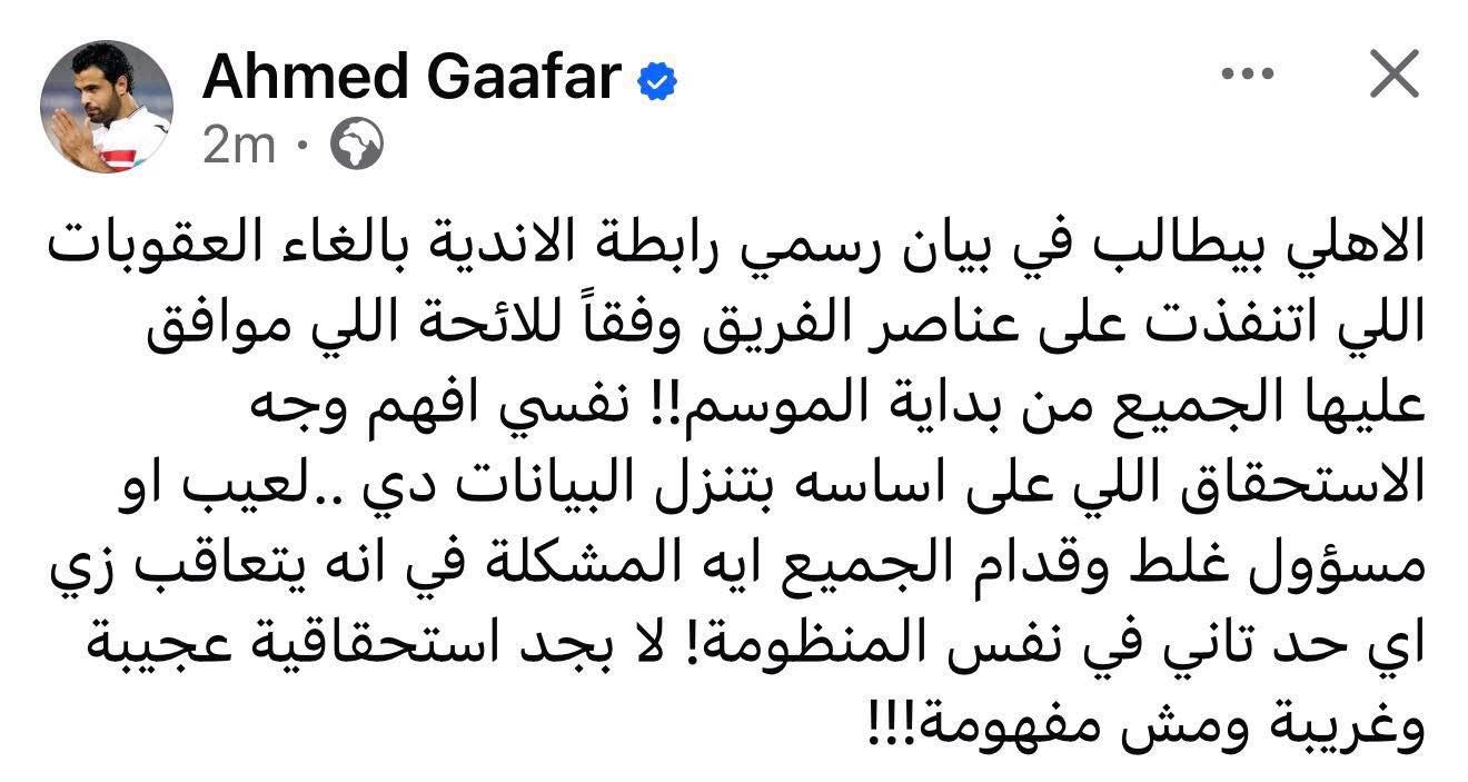 الاهلى اللى كل تصرفاته تشبه تصرفات "الجماعة اللى على الحدود" حرص أحمد جعفر التعليق على بيان الأهلى.