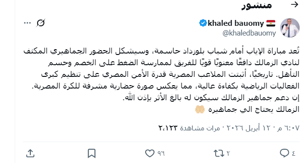 تاريخيًا، أثبتت الملاعب المصرية قدرة الأمن المصري على تنظيم كبرى الفعاليات الرياضية بكفاءة عالية، مما يعكس صورة حضارية مشرفة للكرة المصرية. إن دعم جماهير الزمالك سيكون له بالغ الأثر بإذن الله.