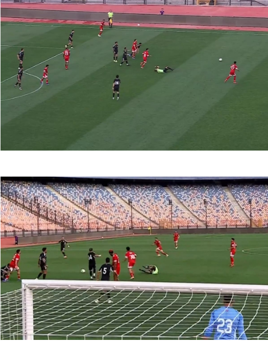 المباراة المقامة الآن على استاد القاهرة الدولي ضمن منافسات الجولة الرابعة من مجموعة تفادي الهبوط في المرحلة النهائية، تعرض حكم اللقاء لاصابة.