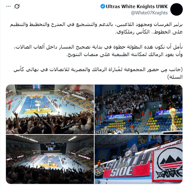 أصدرت رابطة الوايت نايت الداعمة للزمالك بيان رسمي قعب ىتتويج النادي مؤخرا ببطولة كأس مصر لكرة السلة