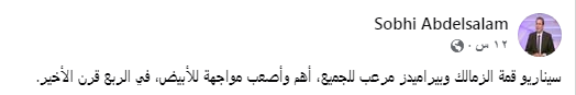 وكتب صبحي عبد السلام من خلال حسابه على موقع التواصل الاجتماعي فيسبوك قائلا: