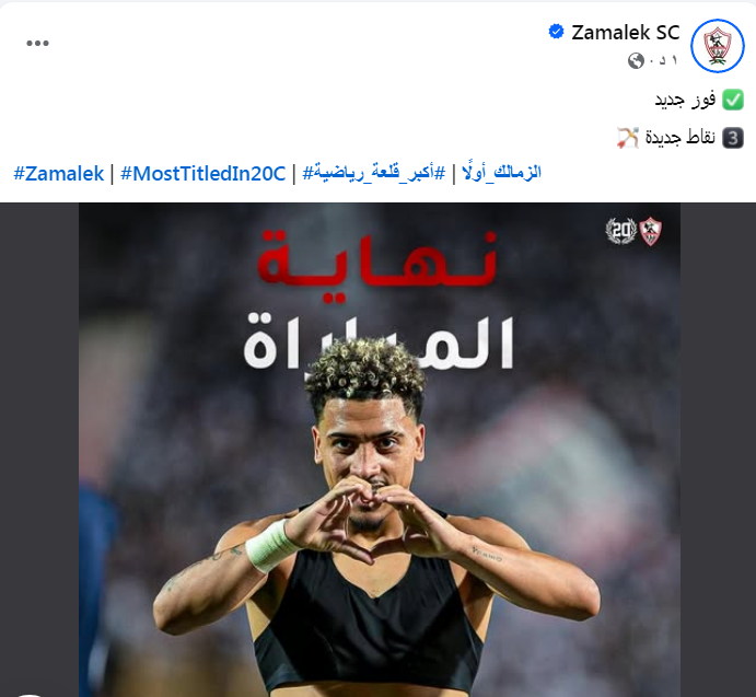 علقت صفحة الزمالك الرسمية على فوز الزمالك اليوم على بيراميدز ضمن منافسات جولة الحسم من بطولة الدورى العام.