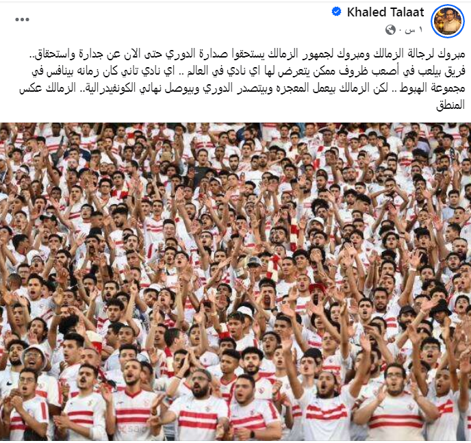 وعبر صفحته الشخصية على موقع التواصل الاجتماعى فيس بوك كتب خالد طلعت معلقاً :