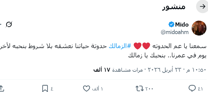 وعبر صفحته الشخصية على موقع التواصل الاجتماعى إكس كتب أحمد حسام ميدو معلقاً :