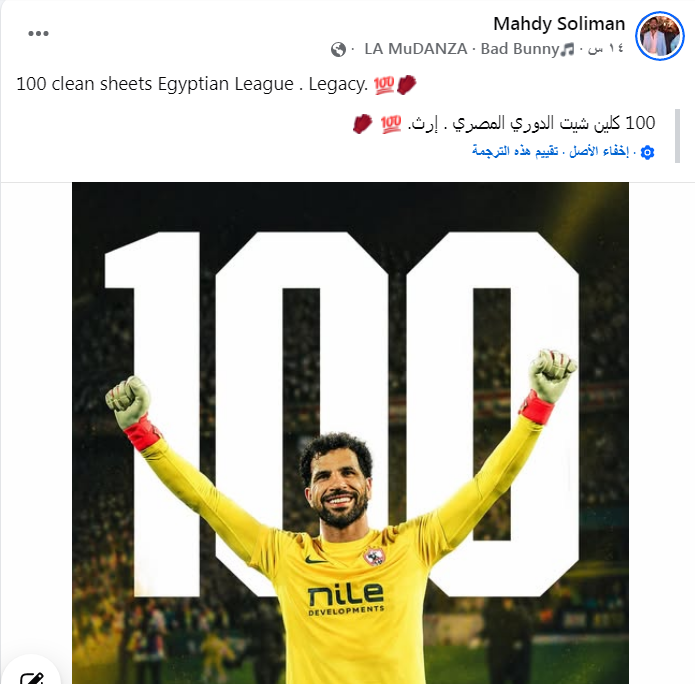 احتفل المهدي سليمان حارس مرمى الفريق الأول لكرة القدم بالنادى، بإنجاز لافت بعدما وصل إلى 100 مباراة بشباك نظيفة في منافسات الدوري المصري.